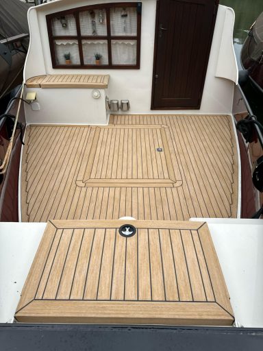 Wir verwenden das wohl realistischste synthetische Teak, was der Markt zu bieten hat. EVO Decking