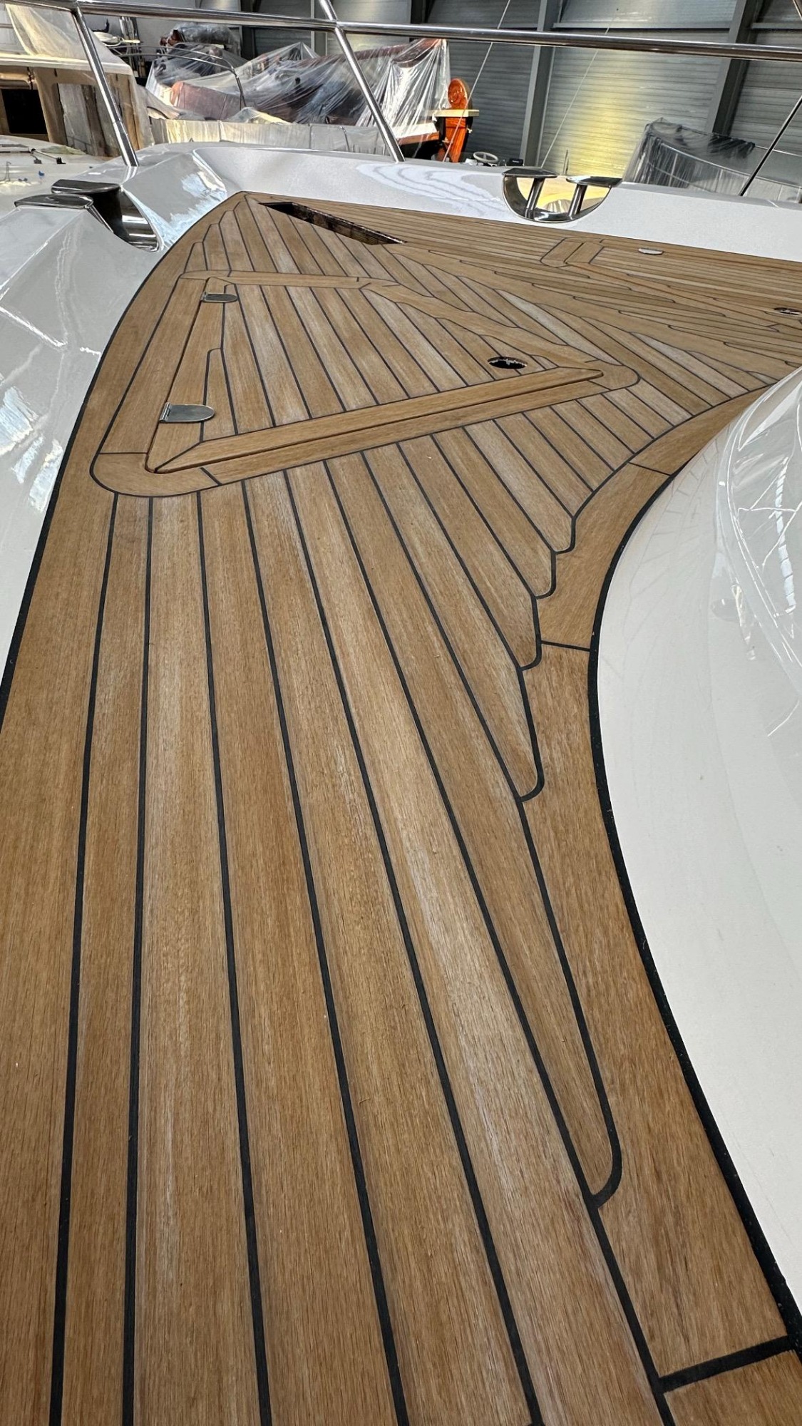 Wir verwenden das wohl realistischste synthetische Teak, was der Markt zu bieten hat. EVO Decking